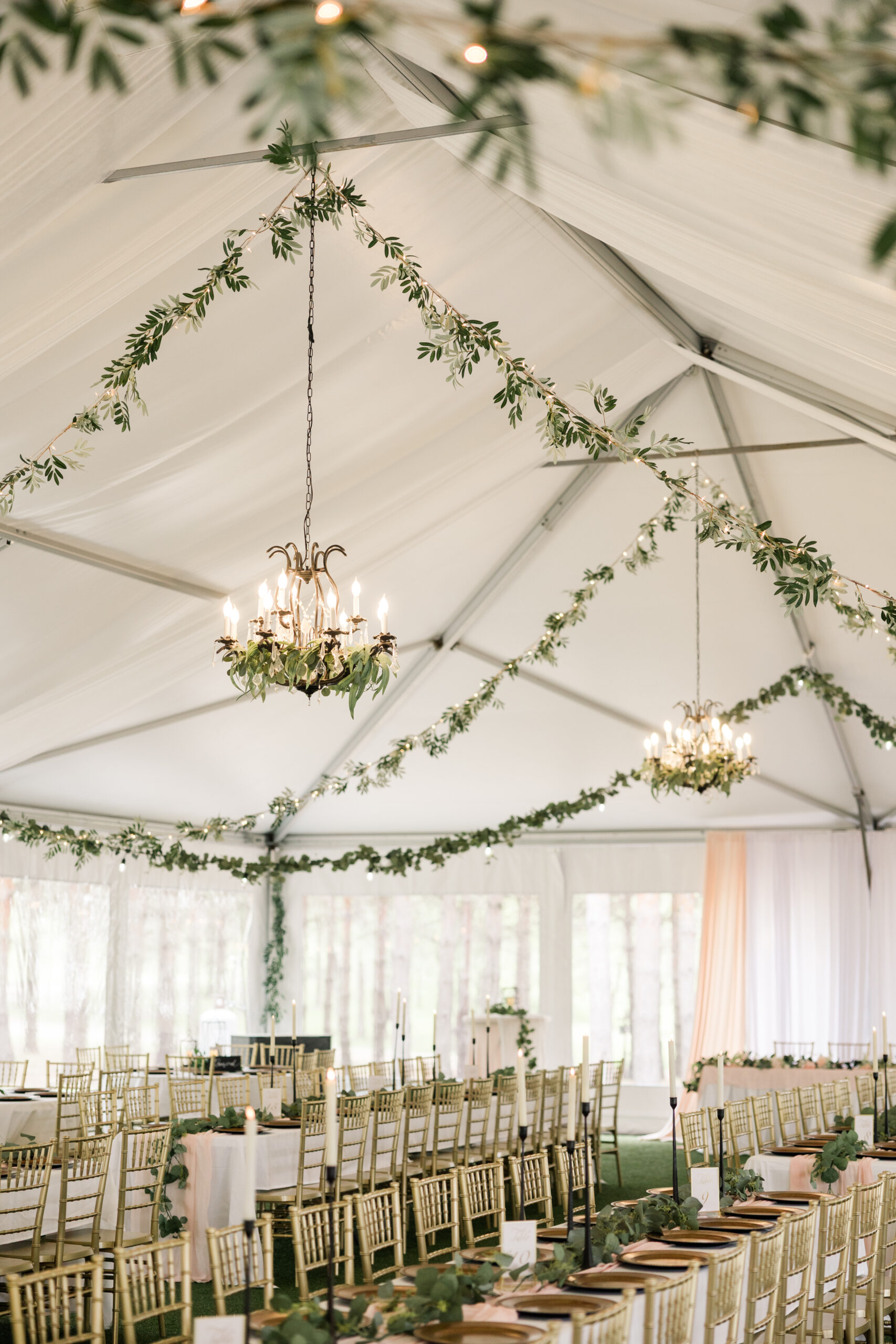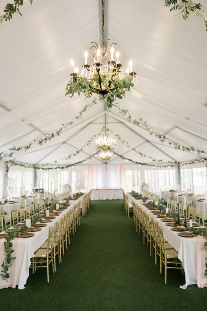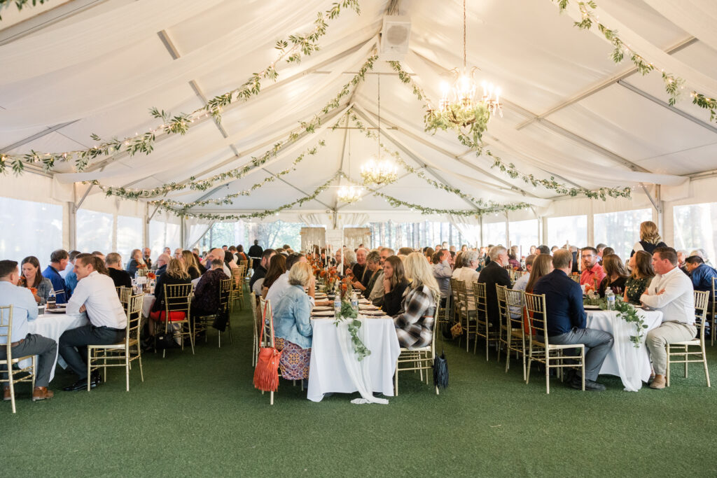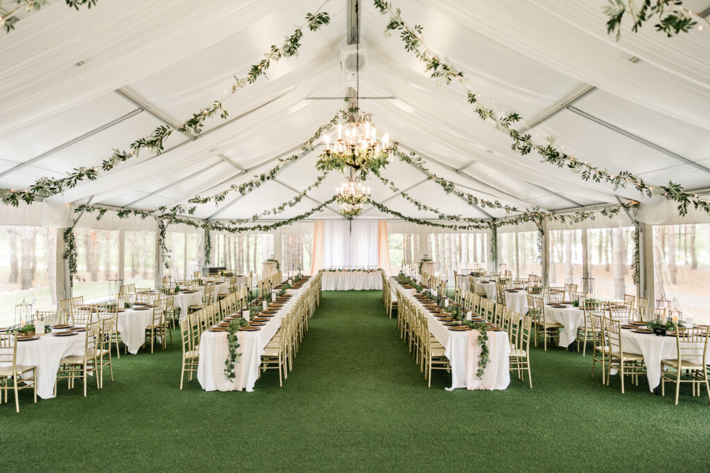 The Pine Pavilion is adorned with elegant chandeliers that cast a warm glow, creating an inviting atmosphere. Coupled with the soft café lighting, this enchanting environment transforms every celebration into a fairy-tale experience.