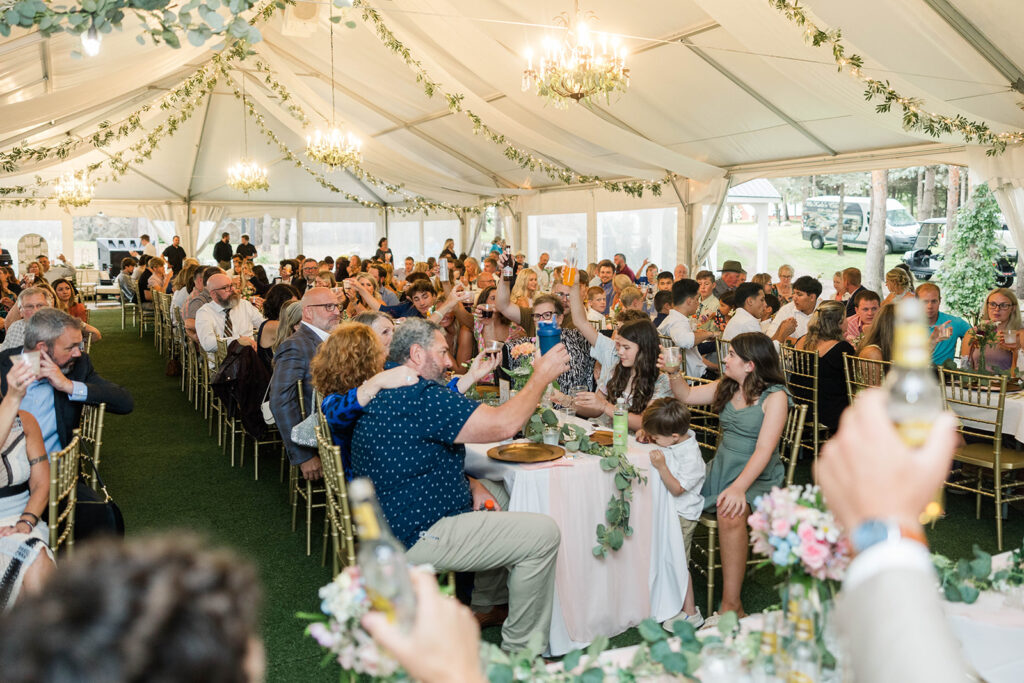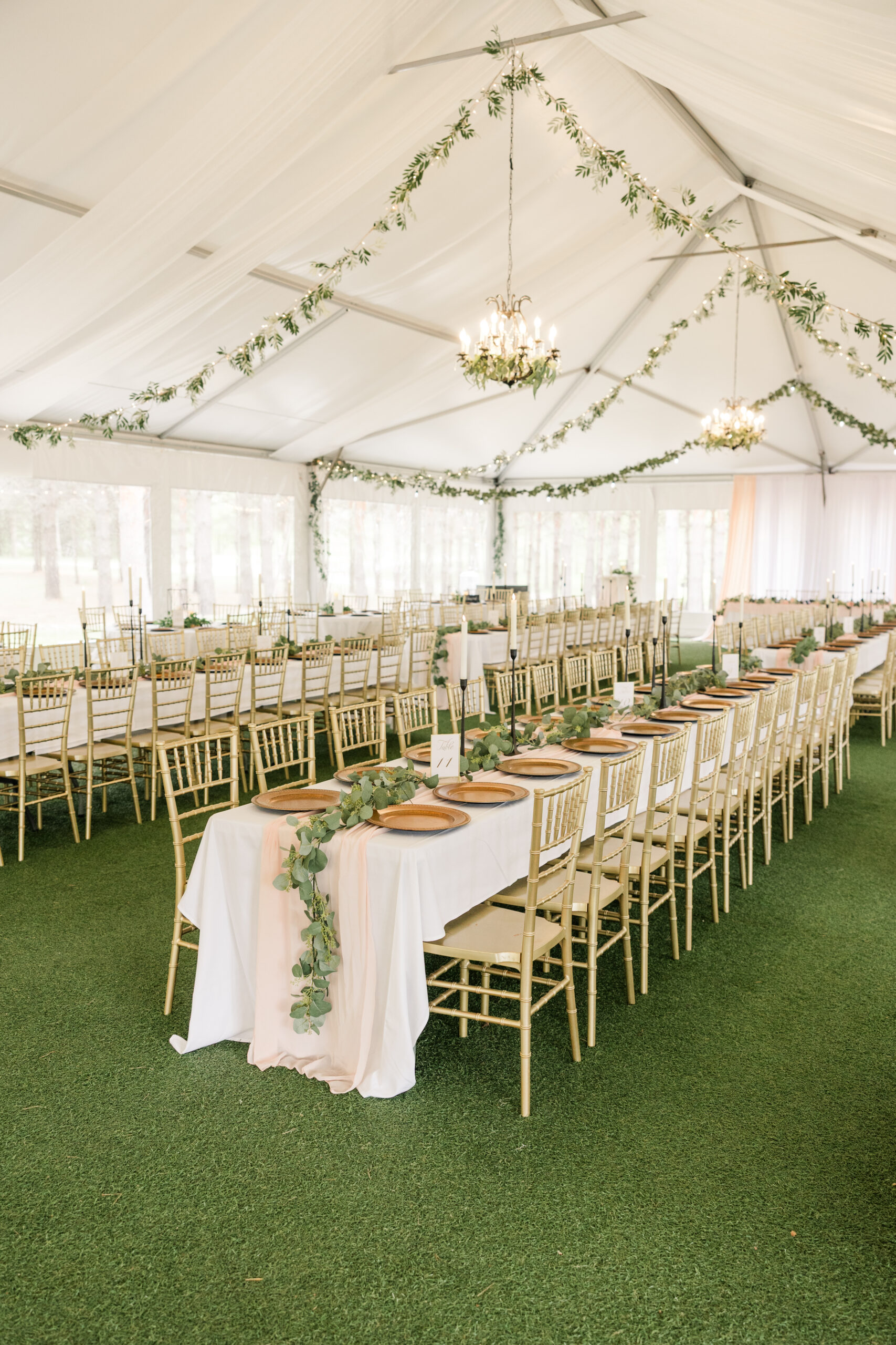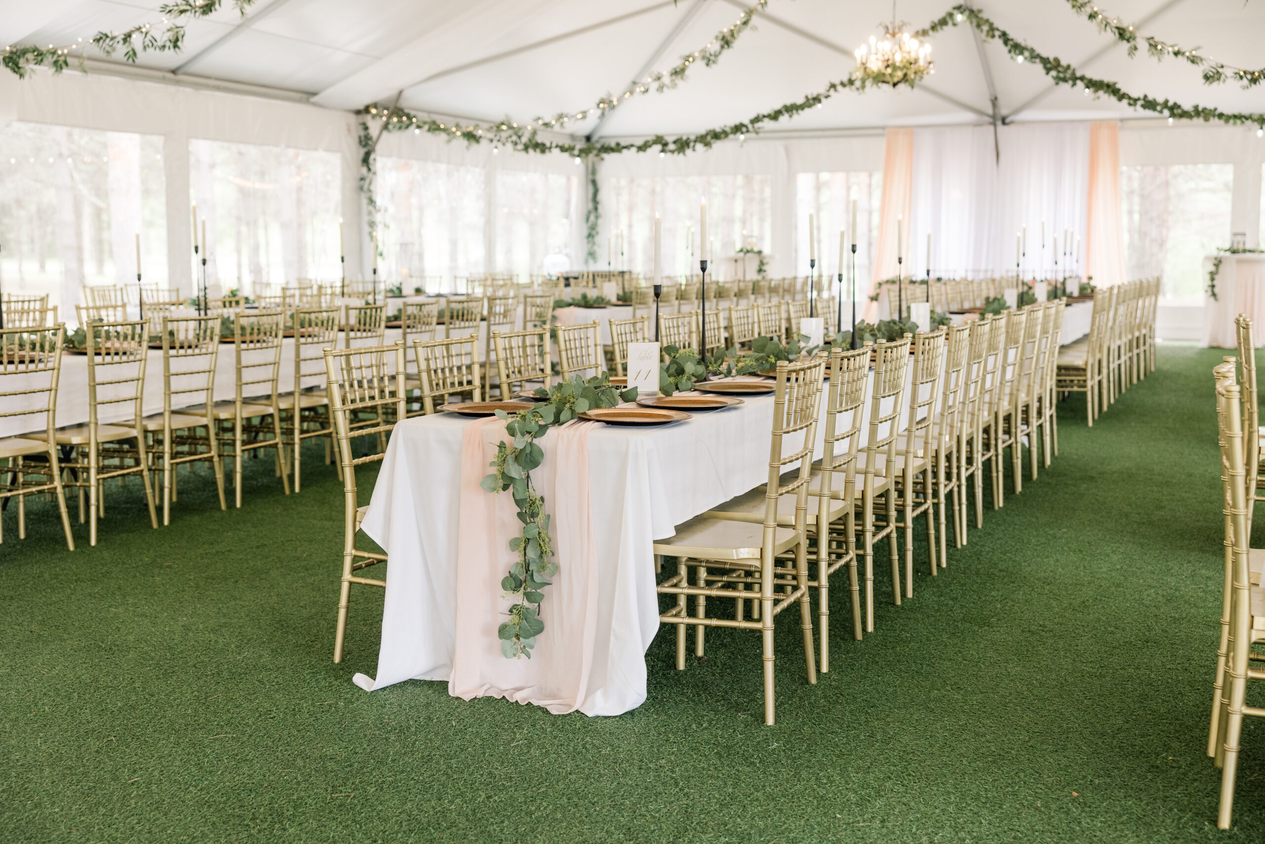 The Pine Pavilion is adorned with elegant chandeliers that cast a warm glow, creating an inviting atmosphere. Coupled with the soft café lighting, this enchanting environment transforms every celebration into a fairy-tale experience.