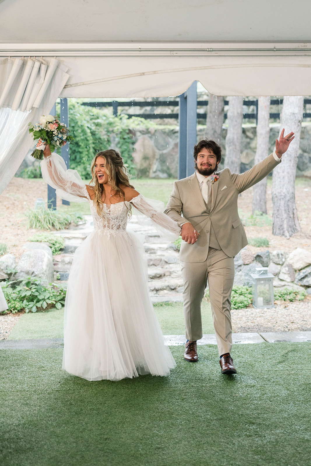 The Pine Pavilion features stunning stone masonry terraced walls that are quarried directly from our property. These walls not only provide a beautiful aesthetic but also effectively buffer the space from the wind, ensuring a comfortable atmosphere for your event.