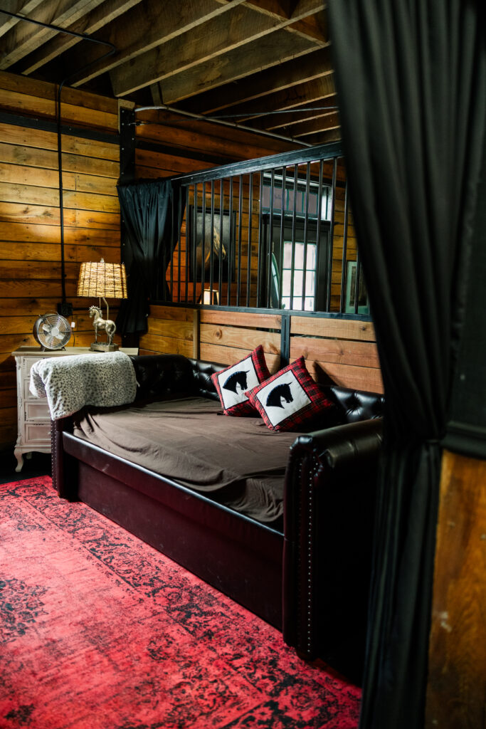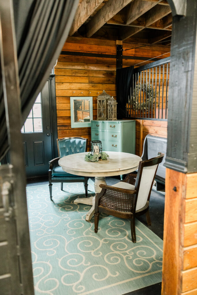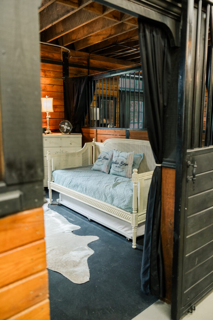 The apartment-style living quarters provide a serene escape for wedding parties. Fully climate-controlled and complete with a private restroom, this space is ideal for getting ready or relaxing before the big moment.