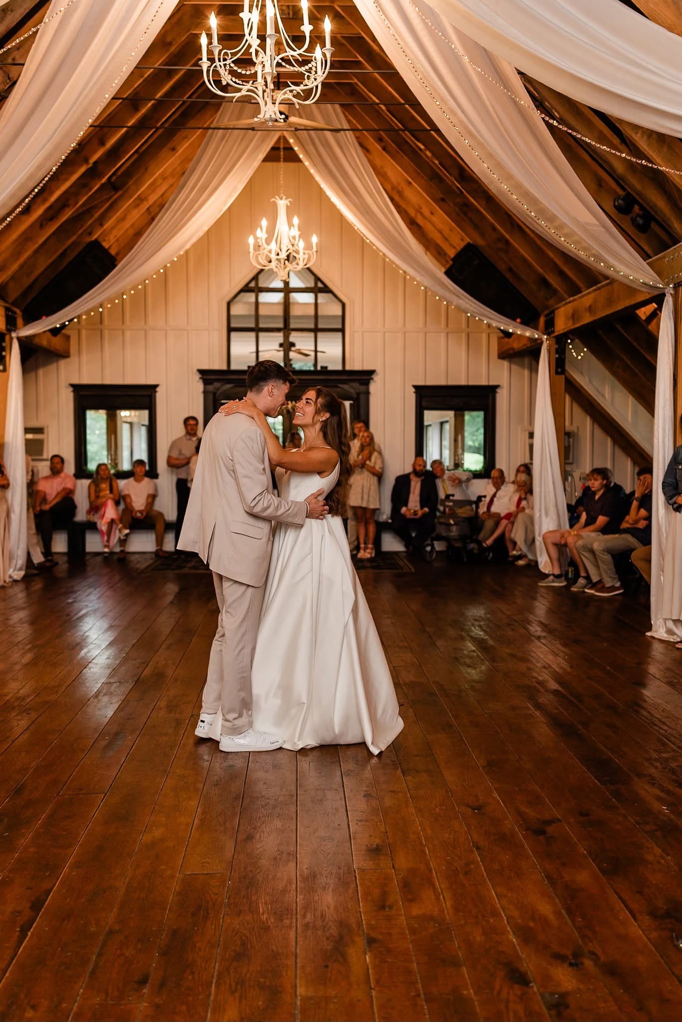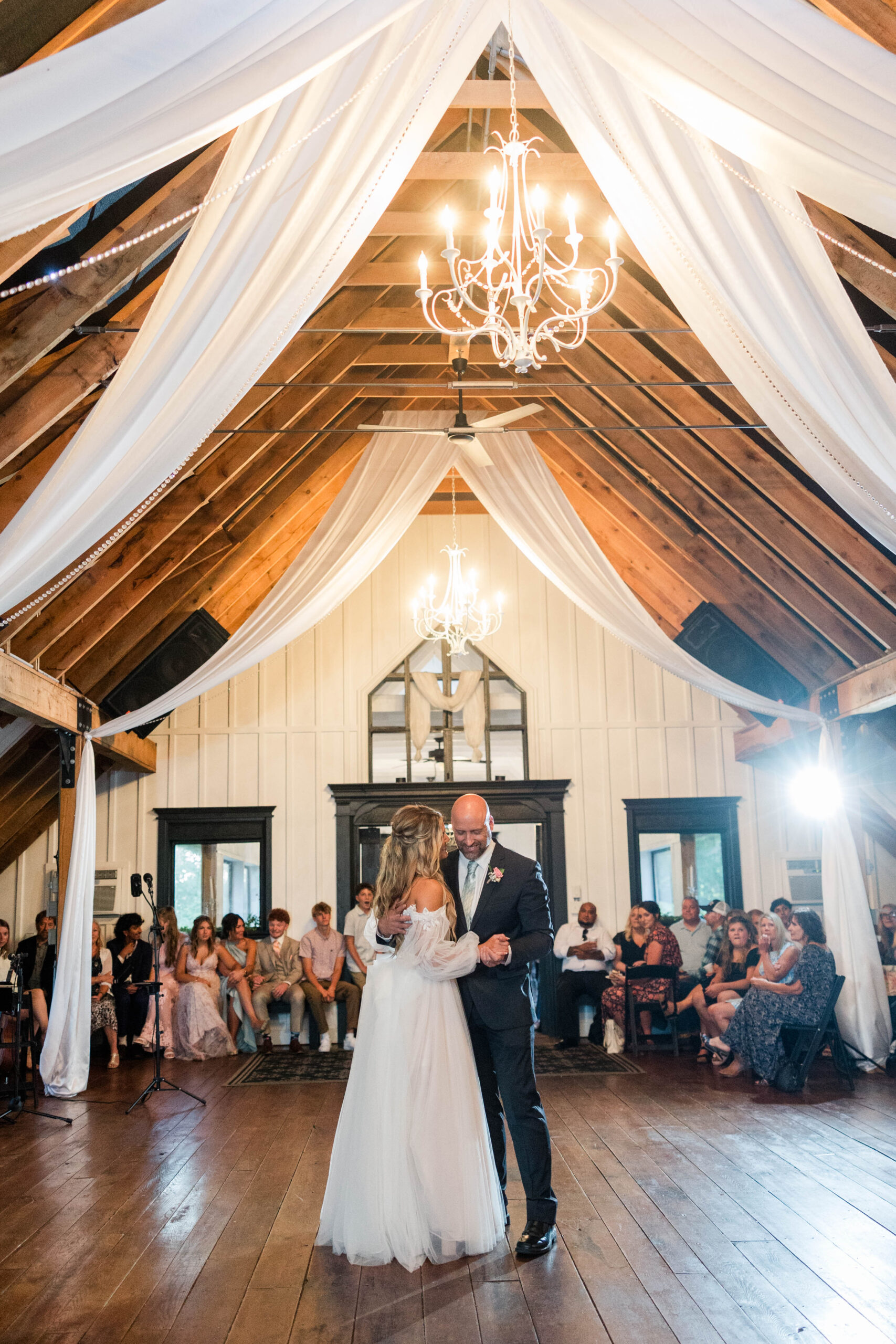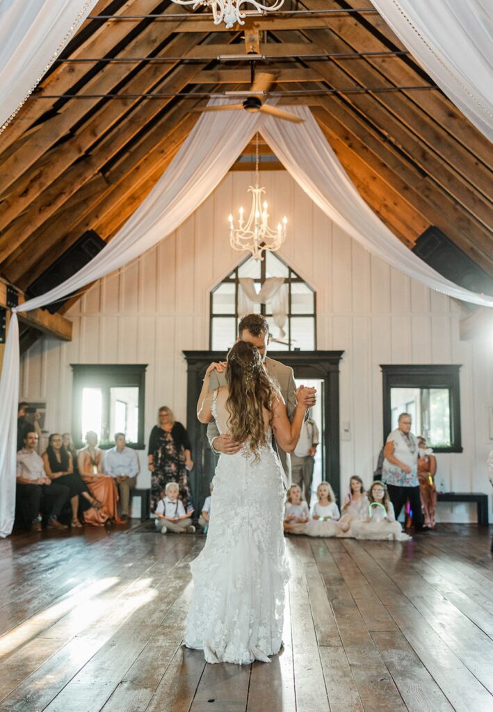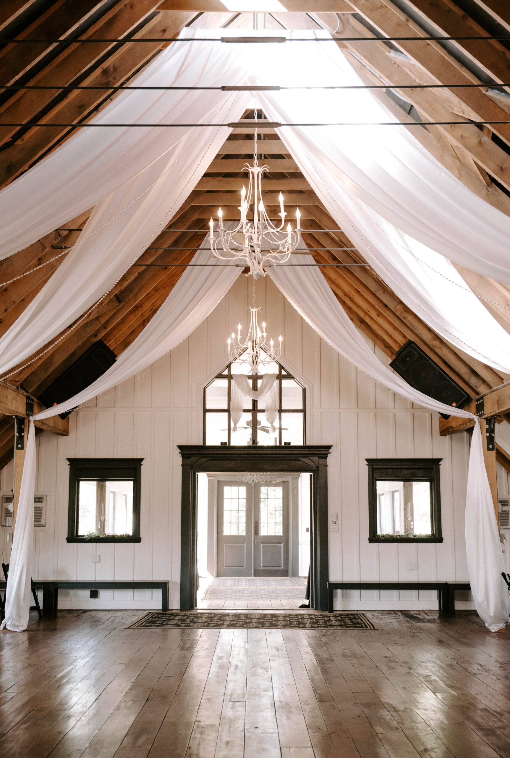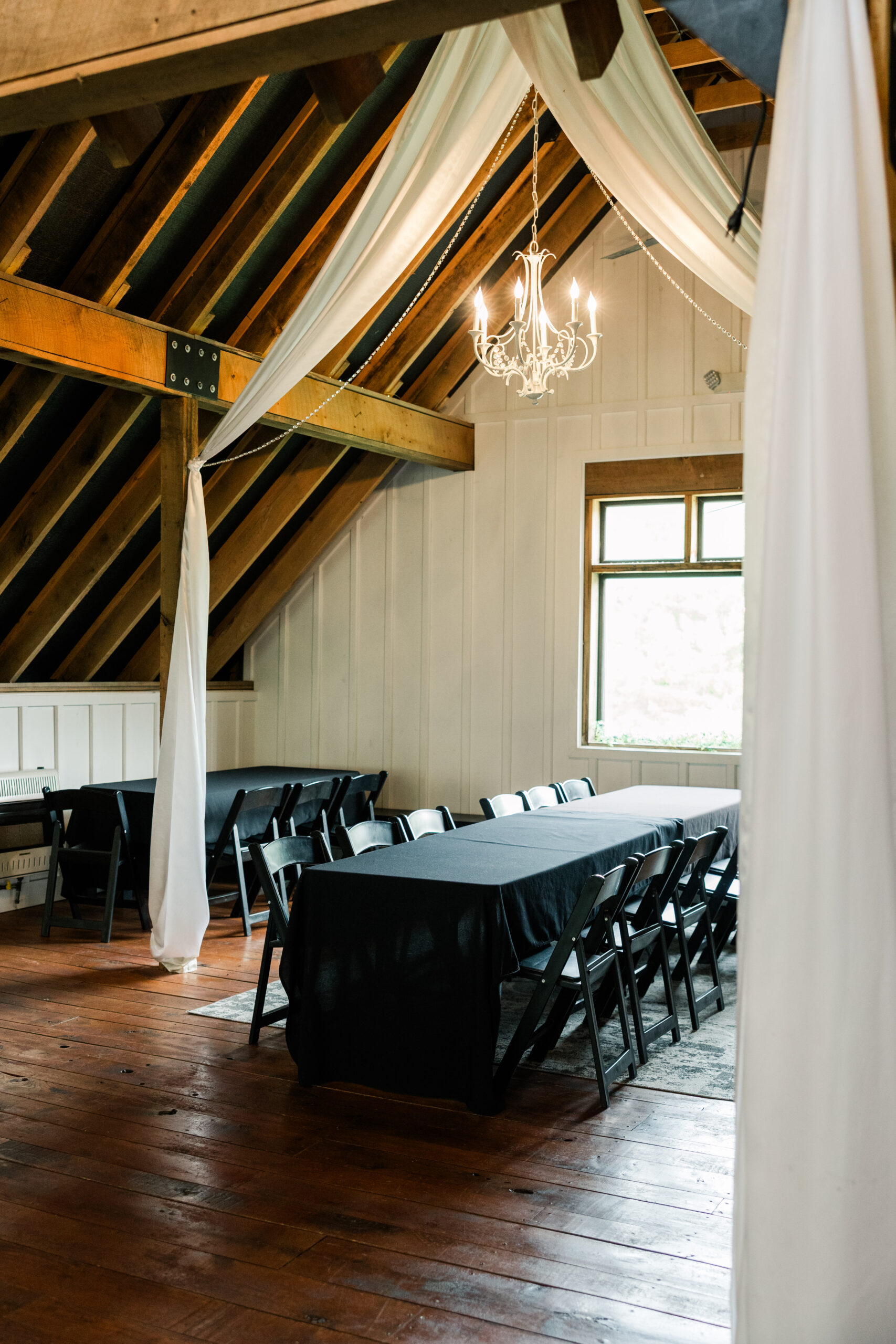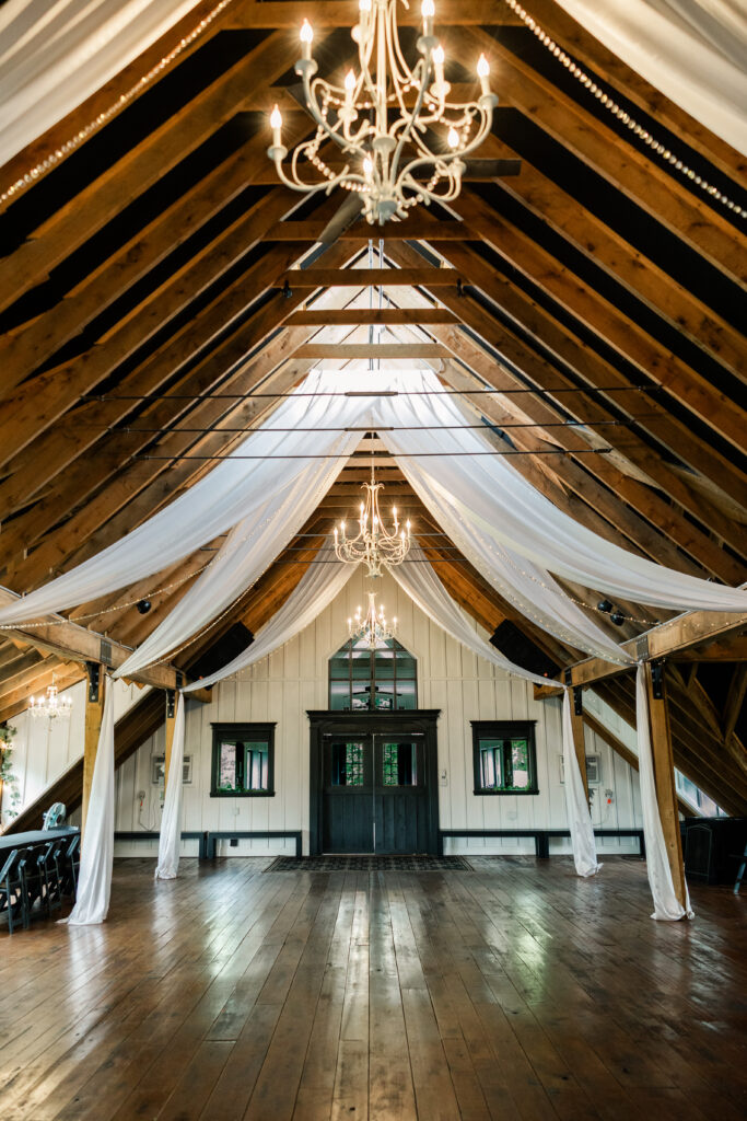 The White Oak Barn features a stunning vaulted open loft that is climate-controlled for your comfort. With a capacity to host up to 150 dining guests or 250 in a ceremony setup, it’s the perfect venue for your special day.